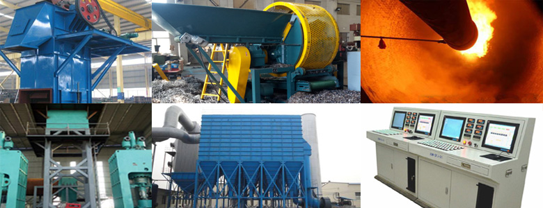 主要設備:金屬破碎機、斗式提升機、控溫爐、自動化控制系統、熱壓餅機(金屬屑壓餅機,生鐵屑壓餅機,熟鐵屑壓餅機,鋼屑壓餅機,粒子鋼壓餅機)、除塵器及附屬設備。